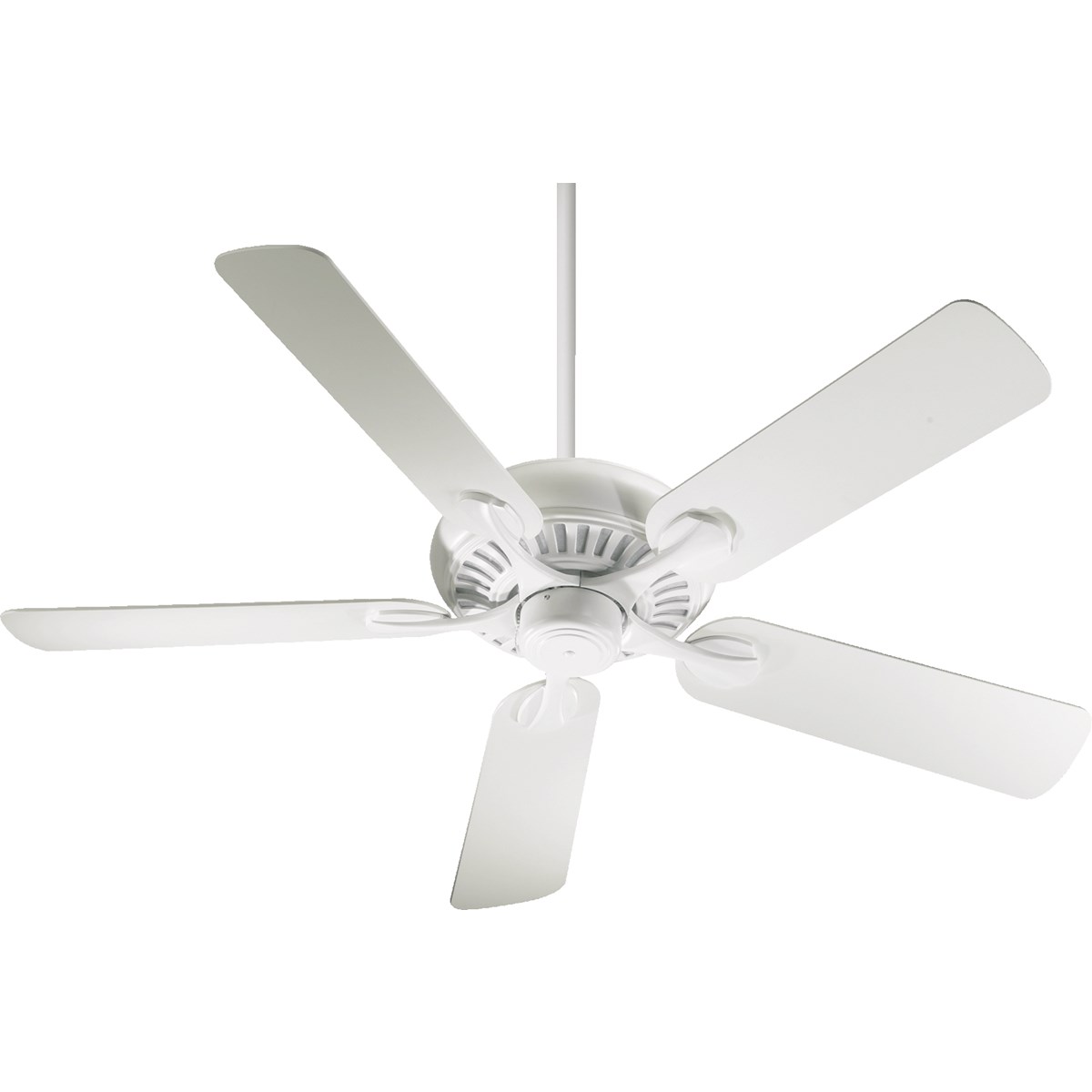 This 52" 5-Blade Pinnacle Ceiling Fan from Quorum has a finish of Studio White and fits in well with any Traditional style decor.