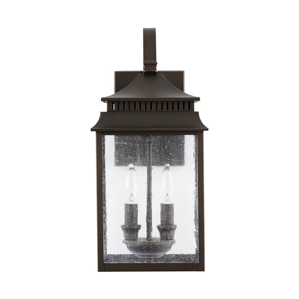 8.5"W x 18"H 2-Light Antiqued Water Glass Outdoor Wall Lantern in Oiled Bronze
