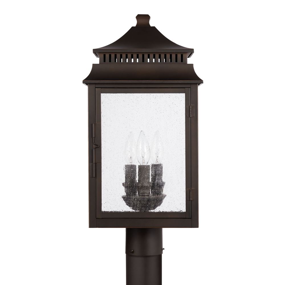 10" W x 21" H 3-Light Antiqued Water Glass Outdoor Post Lantern Fits 3" Post (sold separately) in Oiled Bronze