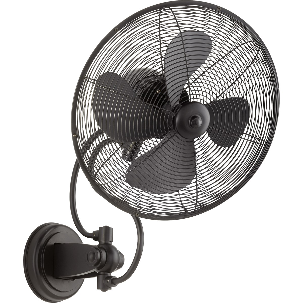 This Piazza 14" Wall Patio Fan from Quorum has a finish of Noir and fits in well with any Transitional style decor.