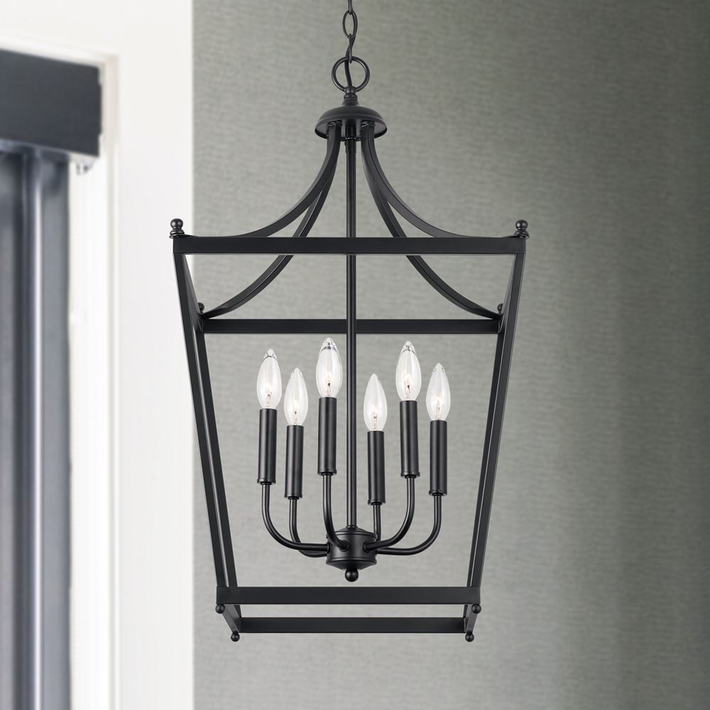 17" W x 29" H 6-Light Lantern Foyer Pendant in Matte Black