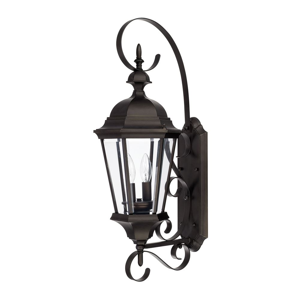 9"W x 17"H 2-Light Clear Beveled Glass Outdoor Wall Lantern in Old Bronze