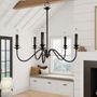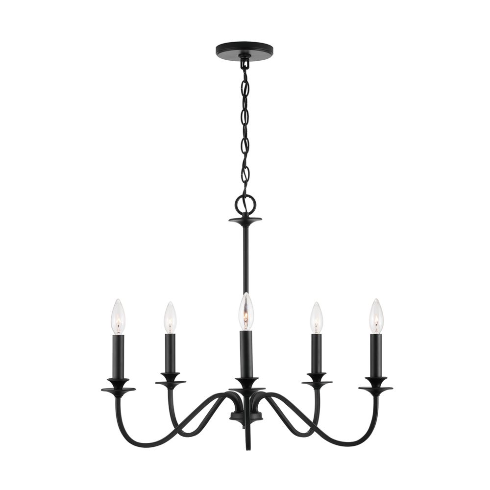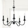 The iconic silohette of this 5-light chandelier gets a modern update with the matte black finish. The curved arms add a sculptural layer and draw the eye upward for a classic, understated aesthetic.