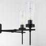 Striking lines and pronouced details create this 5-Light Chandelier. The Matte Black finish adds a hint of industrialism to the modern frame and clear glass cylinders.