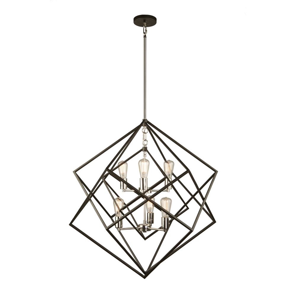 Stunning in design, this two tone multiple square chandelier from the "Artistry" collection is an instant classic. The interior has a polished nickel frame, while the exterior frame is a matte black finish. Multiple rods included with hangstraight for sloped ceilings.