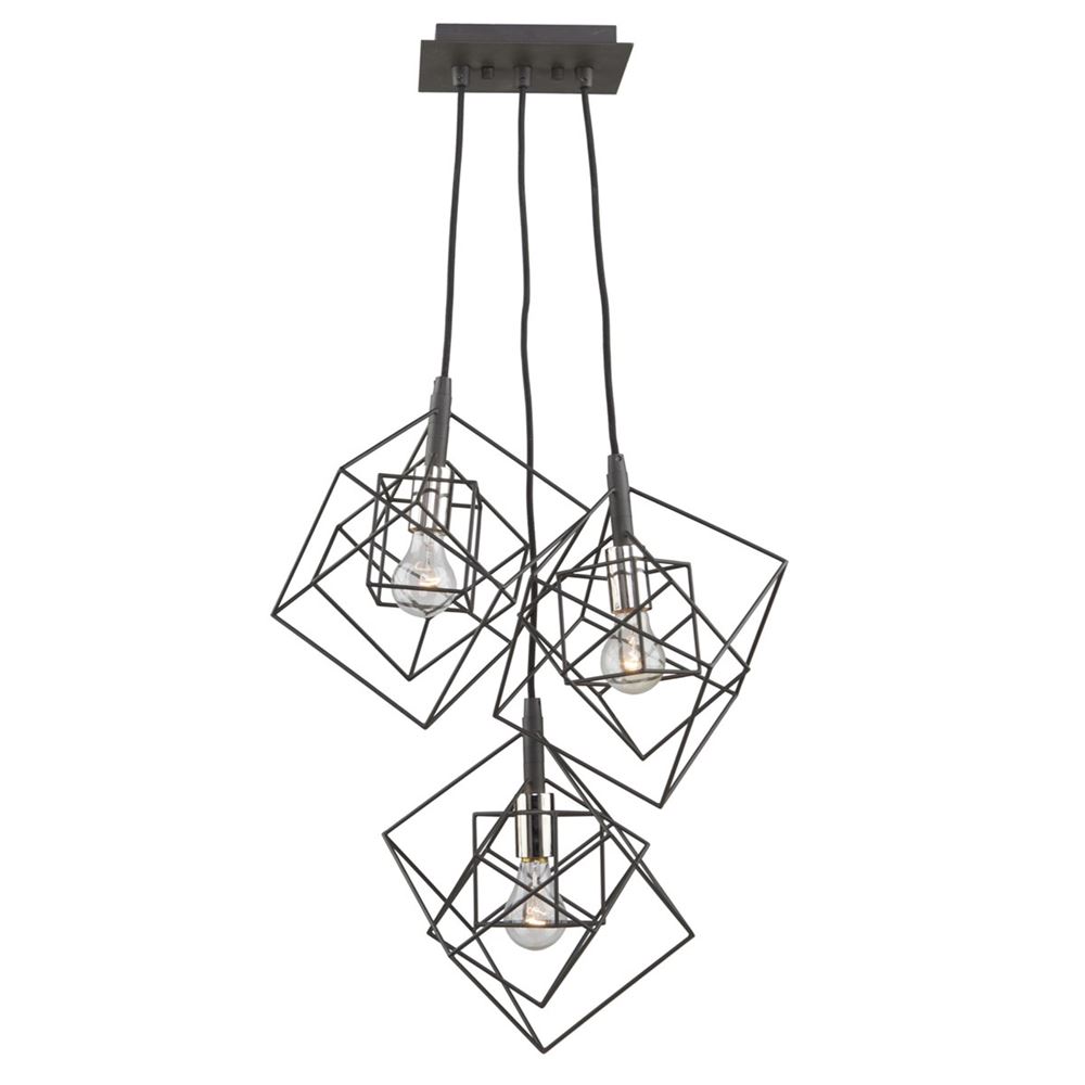 Geometric in design the Artistry collection is meets the transitional type decor criteria. The outer frame is matte black and the interior is plated in polished nickel. Triple pendant shown.