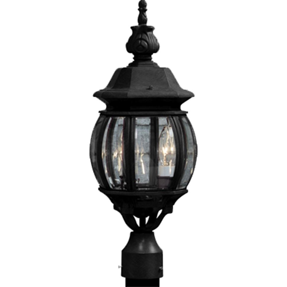 Classico European styled medium outdoor post mount with clear glassware in black finish