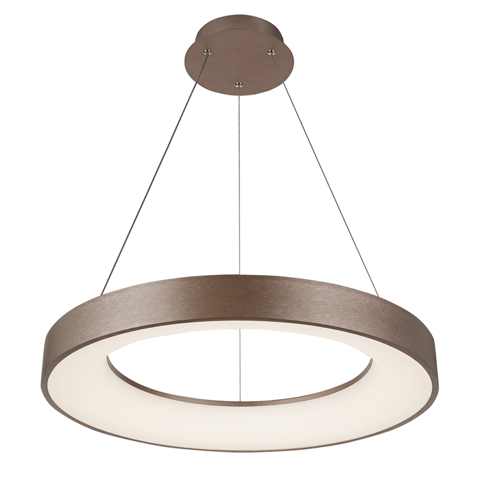 This Sway 24" Round LED Pendant from Justice Design's Evolv line has a finish of Light Bronze and fits in well with any Contemporary style decor.
