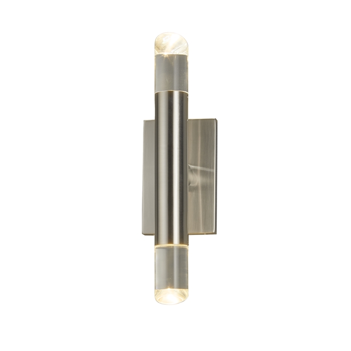 This Kyber 2-LT LED Up & Downlight Wall Sconce from Justice Design's Evolv line has a finish of Brushed Nickel and fits in well with any Contemporary style decor.