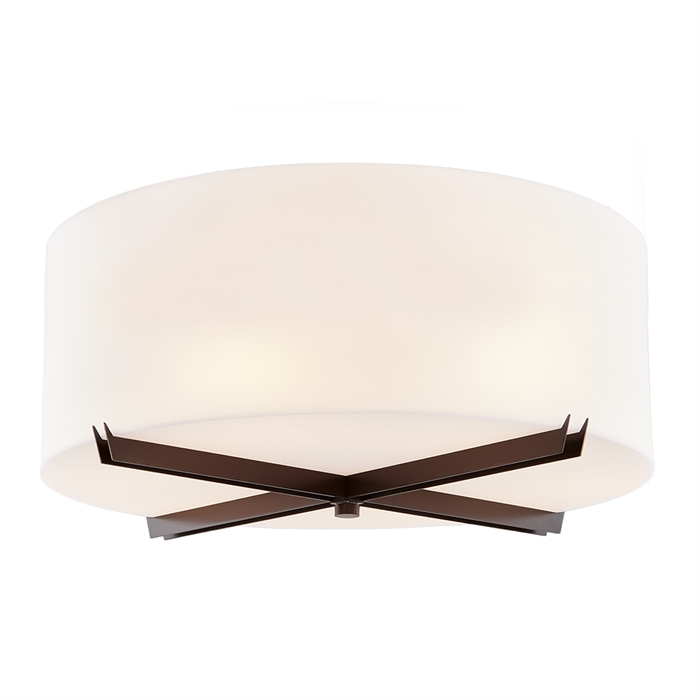 This Crossbar 24" Close-to-ceiling Drum from Justice Design's Evolv line has a finish of Dark Bronze and fits in well with any Contemporary style decor.