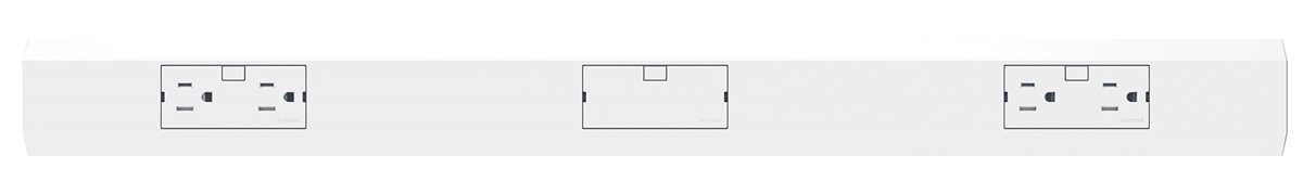 Includes two Tamper-Resistant Outlet Modules and one Blank Module. Can support up to three LED lights. Provides 120V power via 15A outlet modules and 20A pass-through. Module openings are 9” on-center