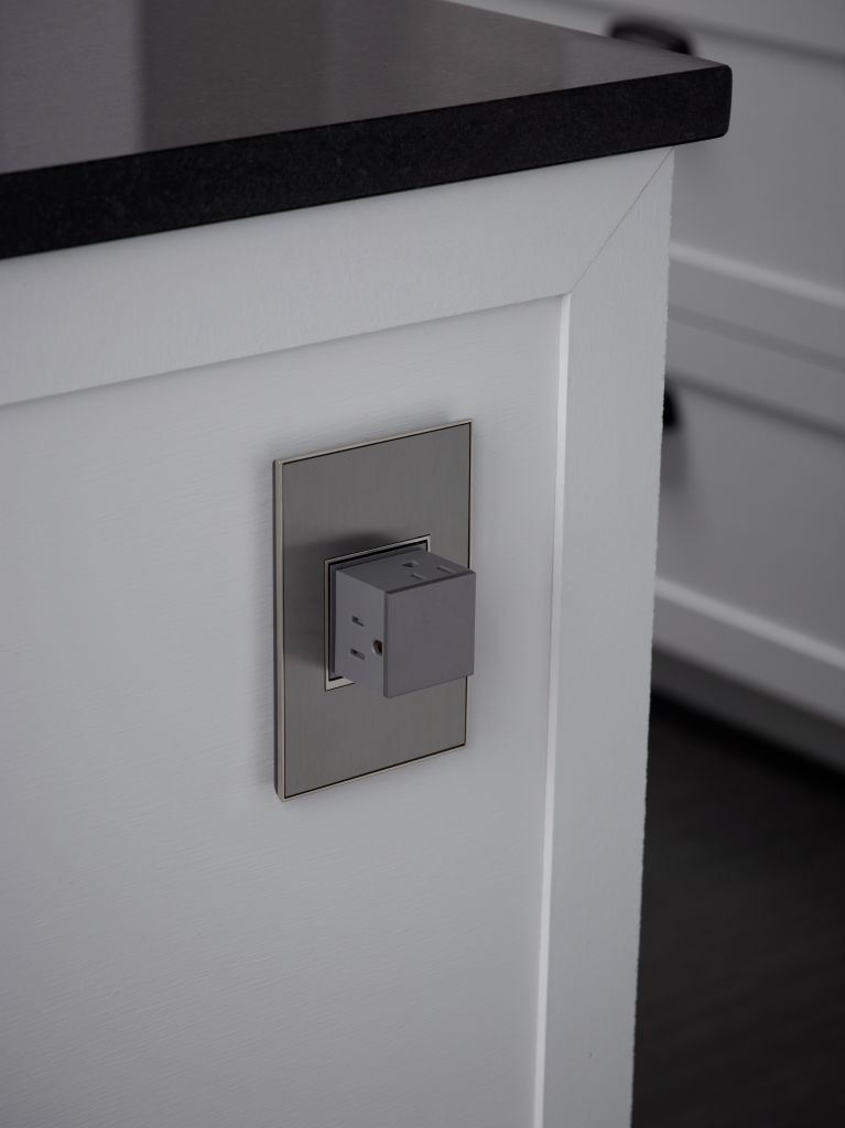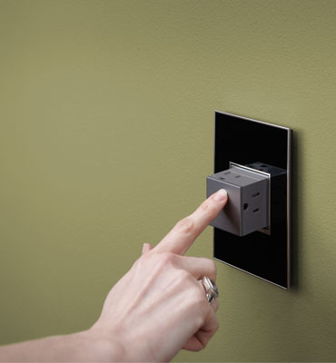The adorne Pop-Out Outlet lets you hide an outlet when not in use. Simply push on the outlet and it disappears into the wall.