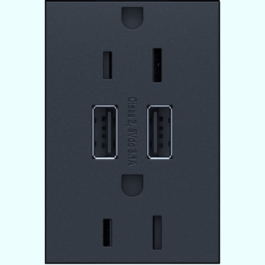 Perfect anywhere you’d like to charge two devices simultaneously while also using receptacles. The adorne Plus-Size Outlet offers greater plug capacity to accommodate larger products and features a classic look. This outlet features a total charging capacity of 3.1A.