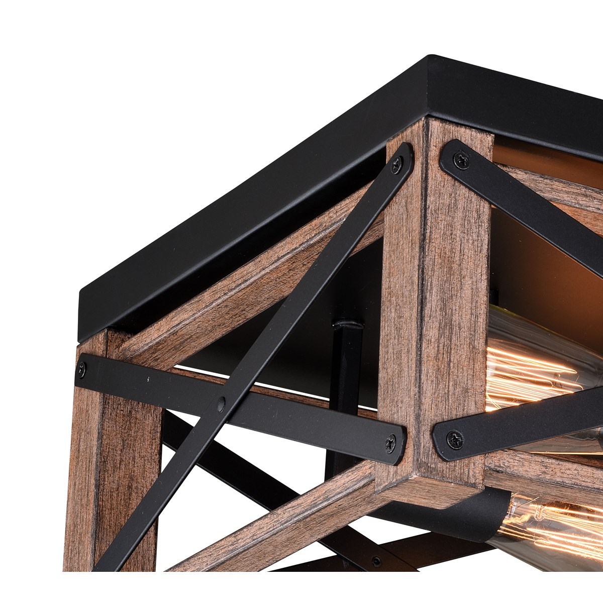 The Colton is a handsome rustic collection inspired by fencing on the ranch. Ceiling and wall mounted fixtures make a strong statement with their crisscross black accents. The natural rustic oak and noble bronze finishes compliment the clear seeded glass shades perfectly. This living collection can be enjoyed wherever you’d like a bit of flair, whether over your dining table, in your family room or hallway.