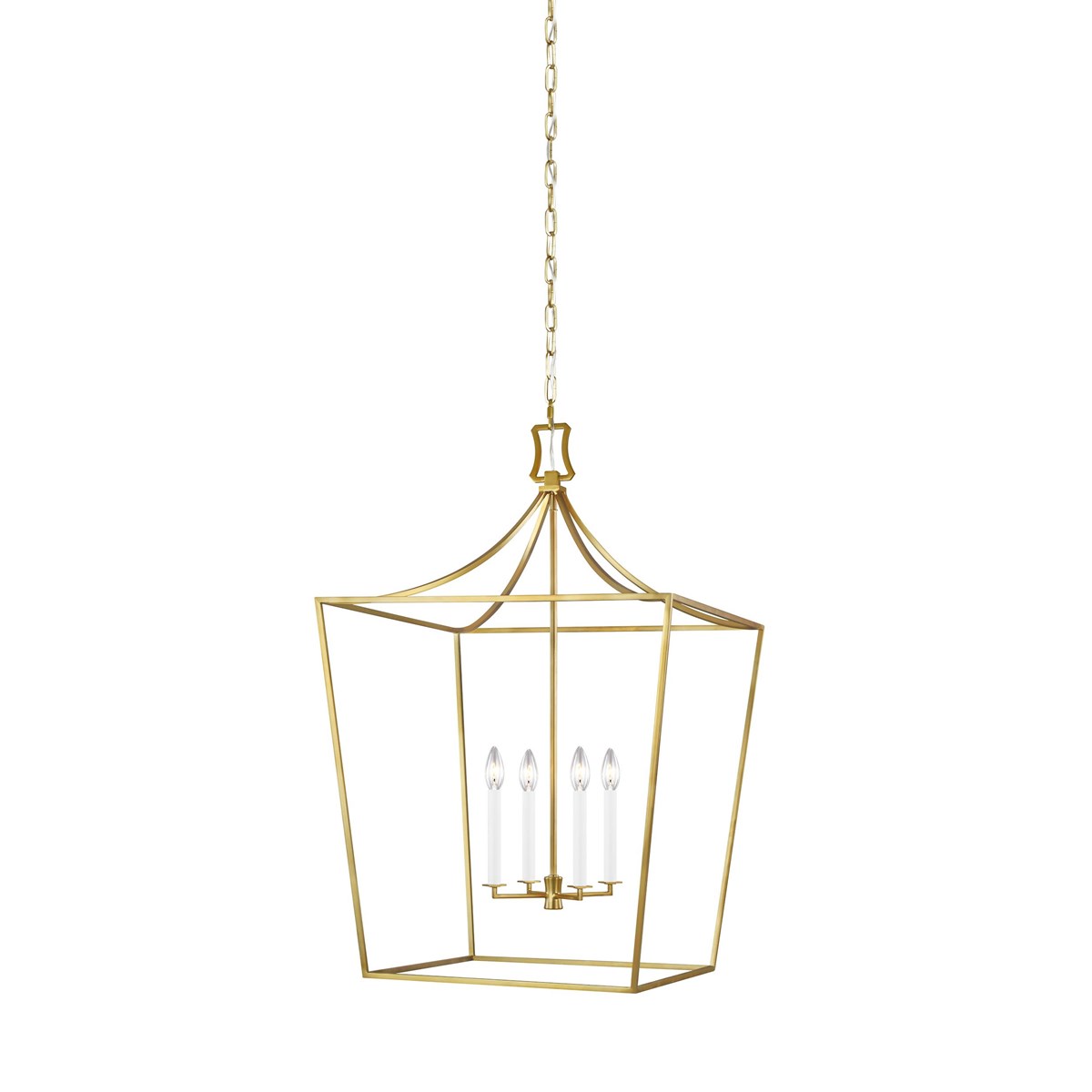 Southold by Chapman & Myers for Generation Lighting pairs curves and lines to form a classic geometric silhouette. This new, contemporary lantern has a thin frame that gives it an airy feel, paired with a tight hub for the candelabra. For a more traditional look, Southold is available in Burnished Brass; for a more contemporary look, try Polished Nickel. This lantern series will make any space well-lit and elegant.