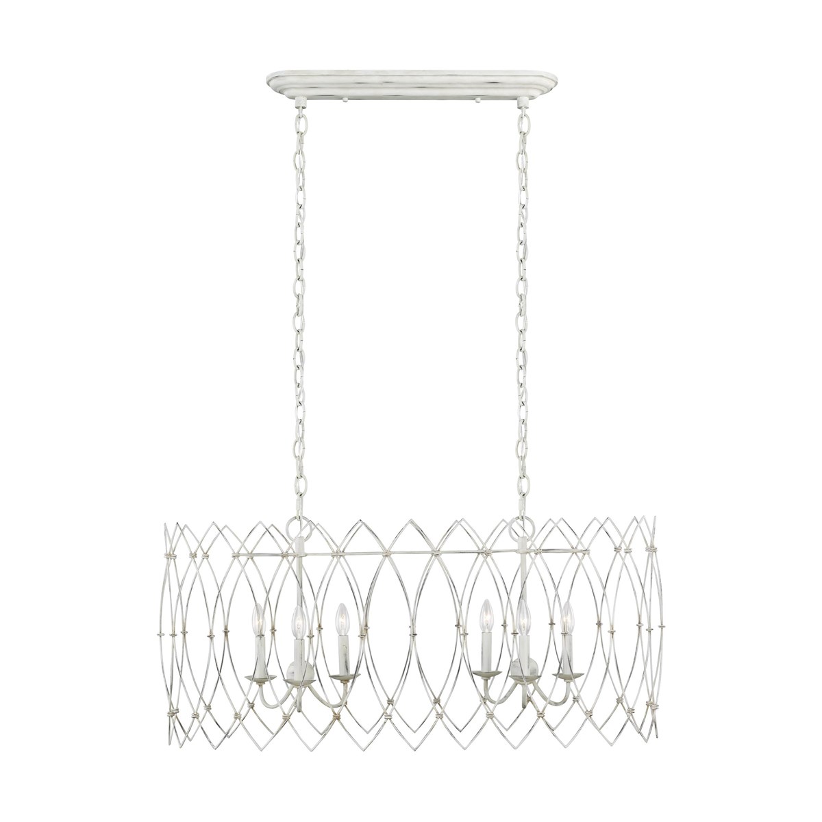 The Gardner by Chapman & Myers for Generation Lighting adds a refreshing, spirited note to any space. Both the hanging shade and linear show off a boldly geometric, Rustic White frame that is hand welded, painted and patinated to give it a unique finish. This piece is stunning in a foyer or dining room and its damp rating make it versatile for covered outdoor spaces as well.