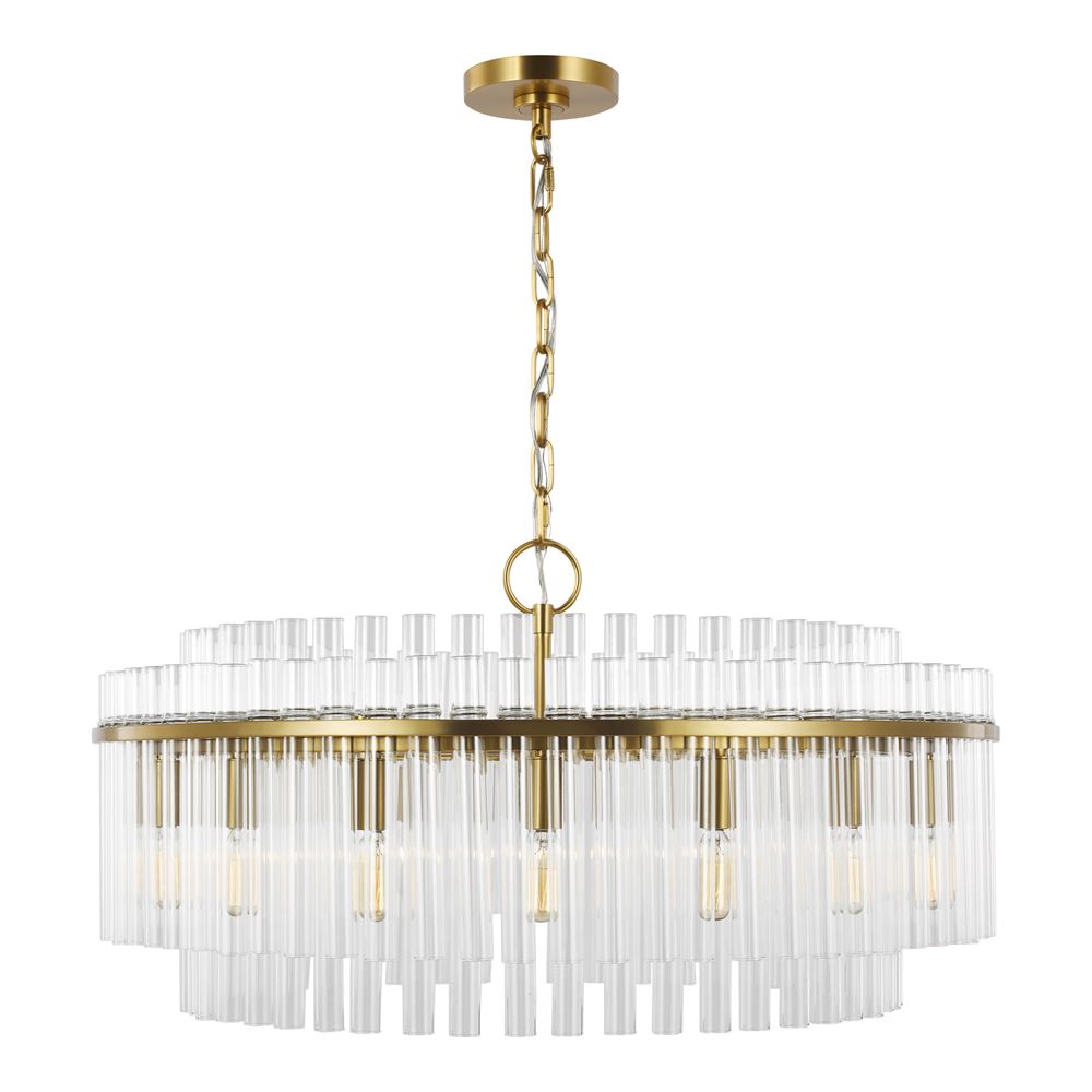 This 16-LT Large Chandelier from Chapman & Myers has a finish of Burnished Brass and fits in well with any Transitional style decor.