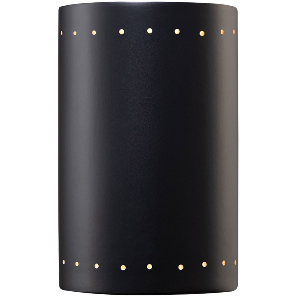 This Large Outdoor LED Cylinder w/ Perfs from Justice Design has a finish of Matte Black and fits in well with any Transitional style decor.