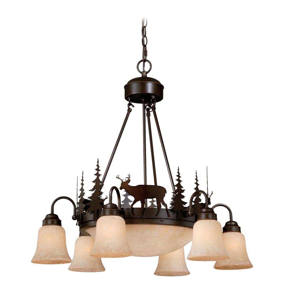 Bryce 9L Chandelier Burnished Bronze with Amber Flake Glass