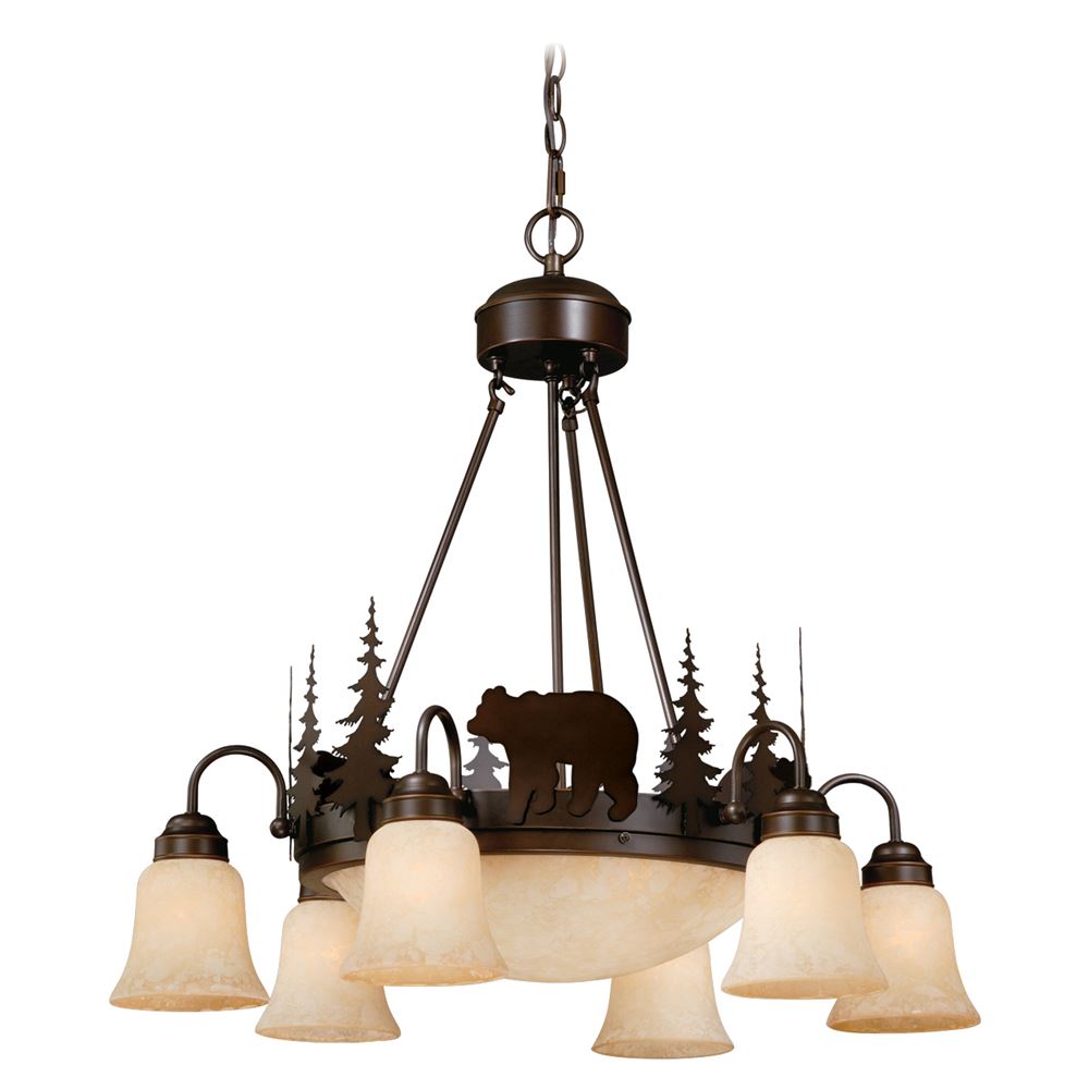 Bozeman 9L Chandelier Burnished Bronze with Amber Flake Glass