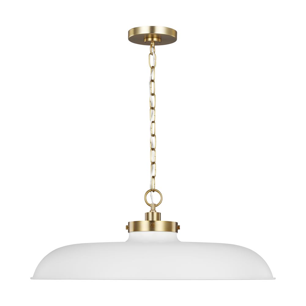 This 1-LT Large Pendant from Chapman & Myers has a finish of Matte White / Burnished Brass and fits in well with any Transitional style decor.