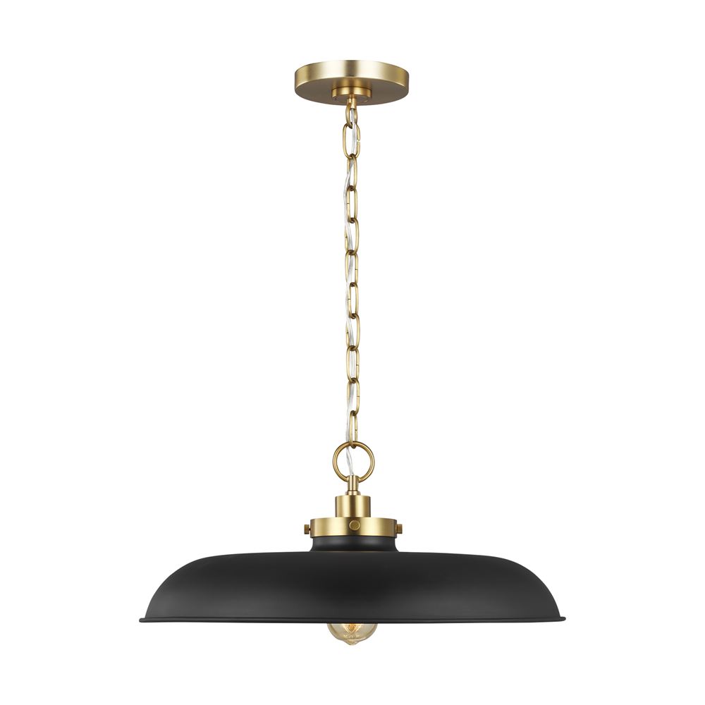 This 1-LT Medium Pendant from Chapman & Myers has a finish of Midnight Black / Burnished Brass and fits in well with any Transitional style decor.