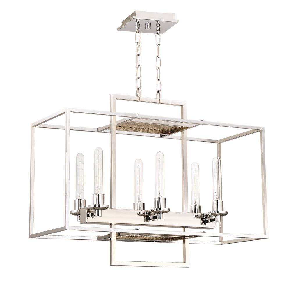 The sparse structure of the Cubic light fixture marries a rustic, lantern-style with a streamlined industrial look. The metal finish with contrasting corner accents give the Cubic openness that allows the candle-inspired bulbs to be viewed without obstruction.
