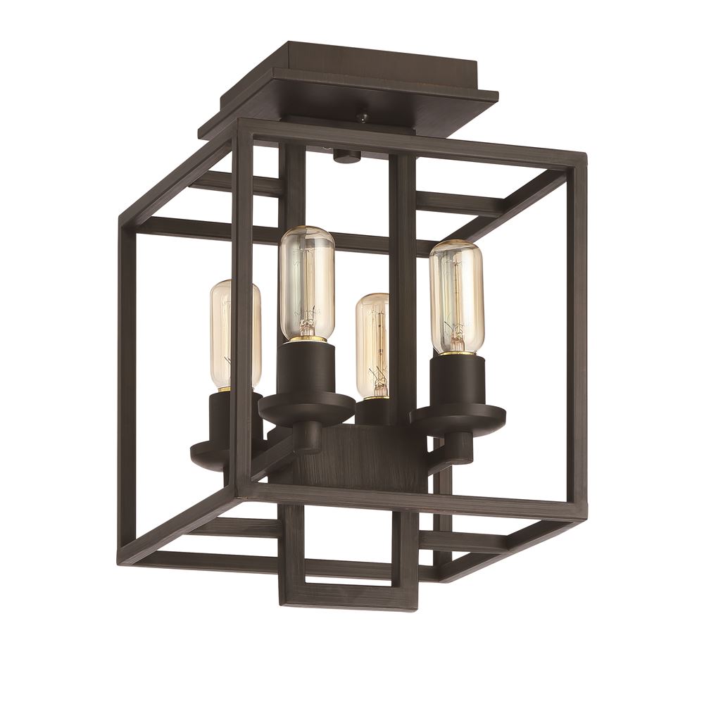 The sparse structure of the Cubic light fixture marries a rustic, lantern-style with a streamlined industrial look. The metal finish with contrasting corner accents give the Cubic openness that allows the candle-inspired bulbs to be viewed without obstruction.