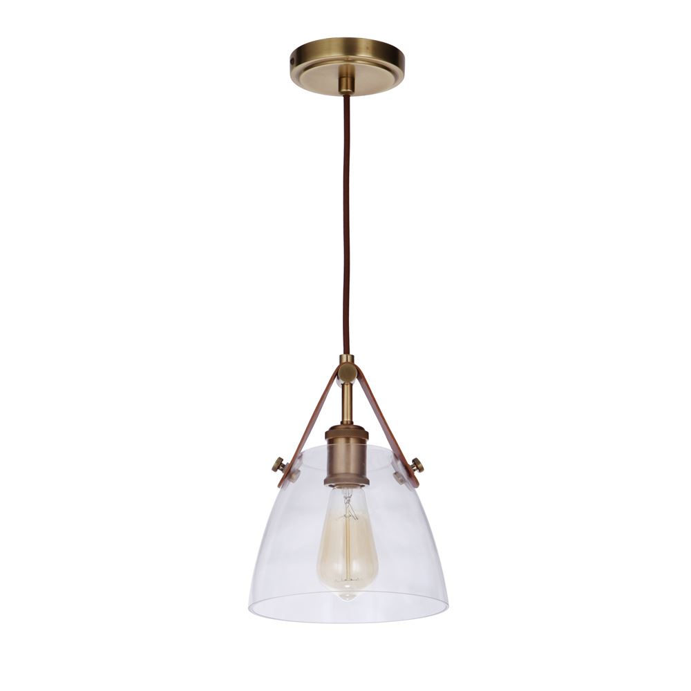 Constructed from solid brass in our vintage brass or polished nickel finish featuring crystal clear glass suspended from genuine leather, the Hagen collection is an instant classic that makes a statement. Designed to complement many of our Gallery Collection chandeliers, the clean design of the Hagen collection can easily be paired with many of our other Gallery Collection pieces or stand alone.