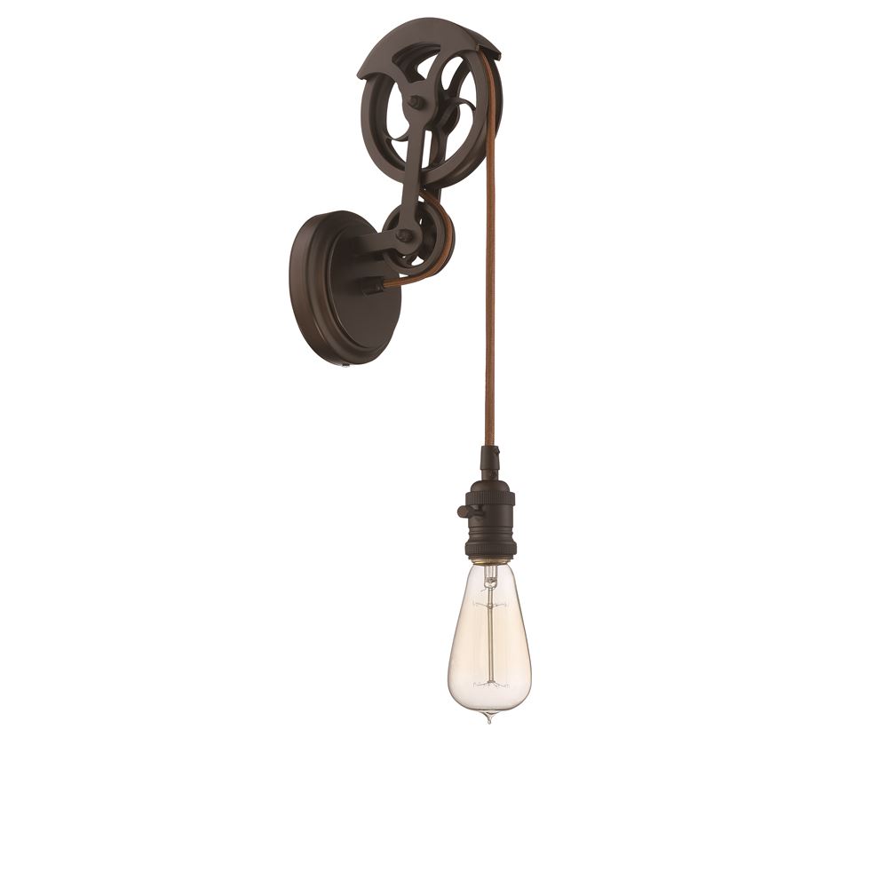 This 1-LT Keyed Pulley Wall Sconce from Craftmade has a finish of Aged Bronze Brushed and fits in well with any style decor.