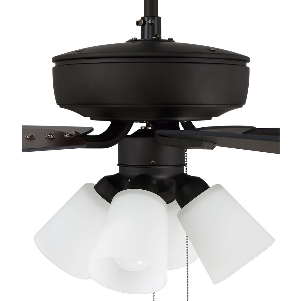 The ideal combination of excellent performance, exceptional value and timeless style, the NEW Craftmade Pro Plus 52" ceiling fan with white frost glass four light with dimmable LED bulbs included featuring a clean motor, updated straight blade arms and canopy is built for performance. The dual mount, 3-speed, reversible fan includes custom 52" reversible blades. Optional 44" custom reversible blades and remote controls are available.