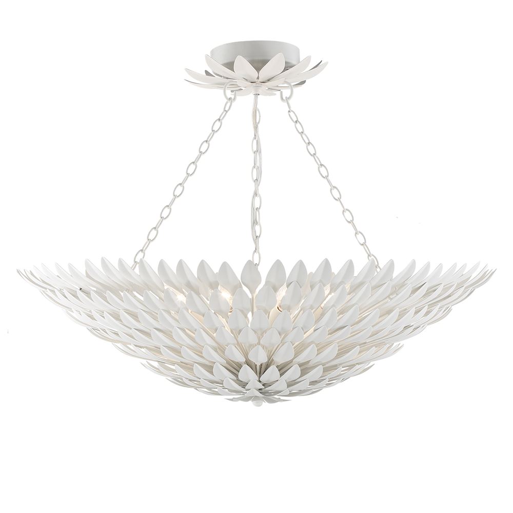 The matte white finish on the Broche chandelier offers a fresh modern take that is versatile to work with nearly every palette and design style. The artistic shape features organic leaf's hand-crafted to create a blossoming organic form. The fixture is designed to illuminate as a chandelier or semi flush mount.