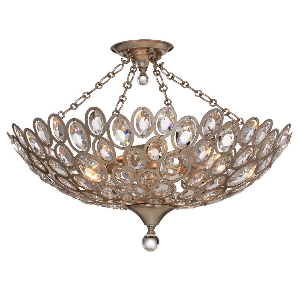 Elegantly embellished with jewel inspired crystals, the Sterling collection exudes an aura of romance. Graduated crystal gems organically encrust the fixture and are accented by a distressed twilight finish, which is the perfect mixture of silver and gold tones. The eclectic flair of this light is perfect for a variety of home decor styles, but are definitely an opulent statement.