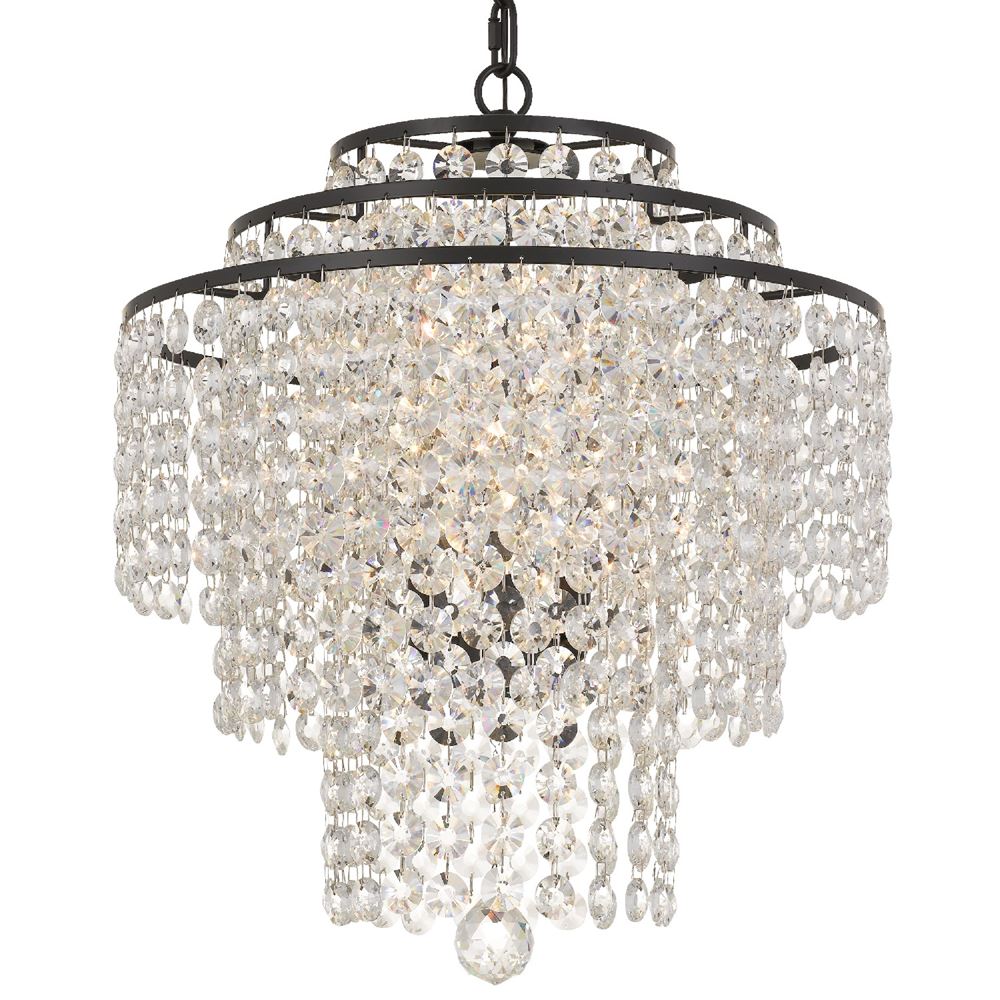 Layers of Crystal strands are arranged on a simple, clean frame creating optimal sparkle. A perfect compliment to any space, this chandelier is sure to amaze.