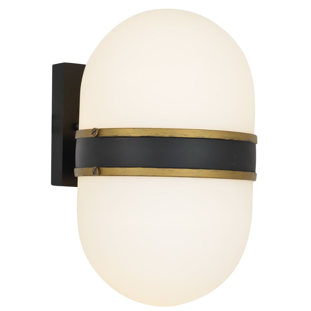 Brian Patrick Flynn's futuristic Capsule Collection adds a touch of industrial grace to front entrances, outdoor chat settings or romantic garden pathways. The egg-shaped design of this outdoor fixture combines a matte black base and opal frosted white glass globe with a distinct, textured gold band. The innovative three-toned design brings instant personality and creates a unique statement for any outdoor space. Capsule can be used outdoors or indoors.
