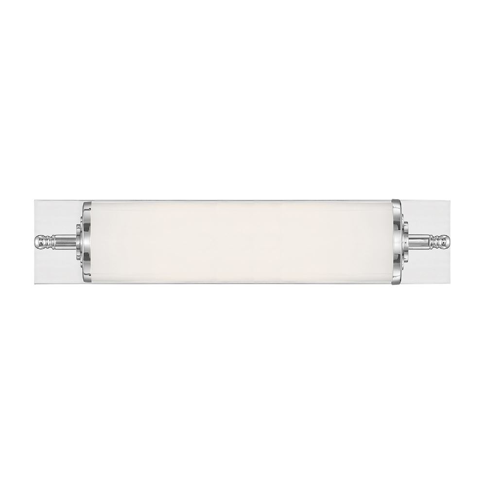 The striking yet simple design of the Forster collection features a sleek backplate and white glass cylinder. With the option to install horizontally or vertically, this vanity light looks great in any bathroom making the space functional and stylish.