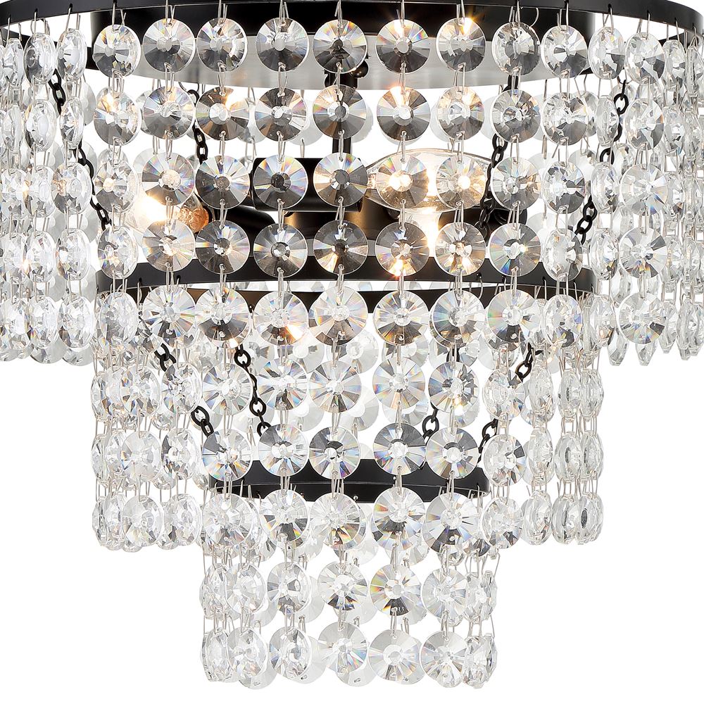 The beautiful Gabrielle silhouette is made of cascading faceted hand-cut crystal strands suspended from its delicate frame. The framework is crafted in wrought iron and available in antique gold, and matte black finishes. Elevate your living space and add character to a room with a shimmering crystal chandelier.
