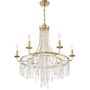 The beautiful Gabrielle silhouette is made of cascading faceted hand-cut crystal strands suspended from its delicate frame. The framework is crafted in wrought iron and available in antique gold, and matte black finishes. Elevate your living space and add character to a room with a shimmering crystal chandelier.