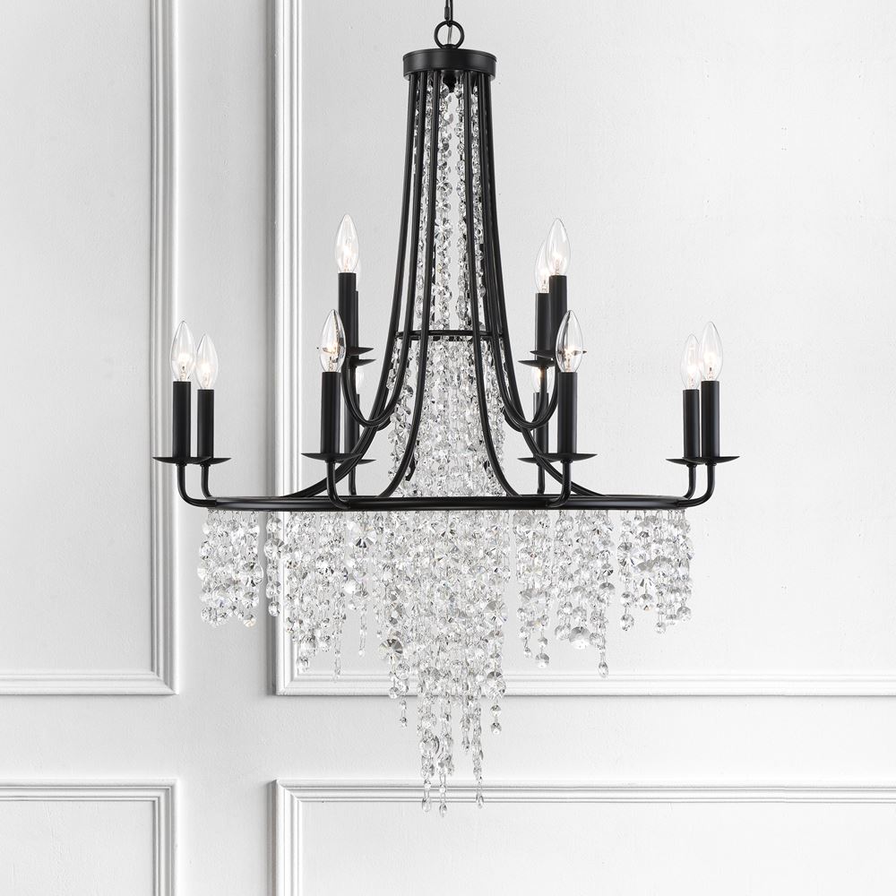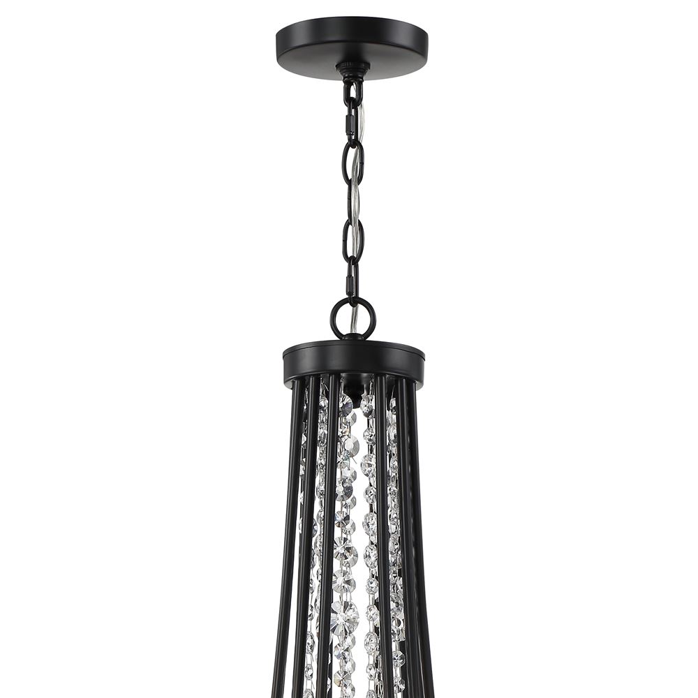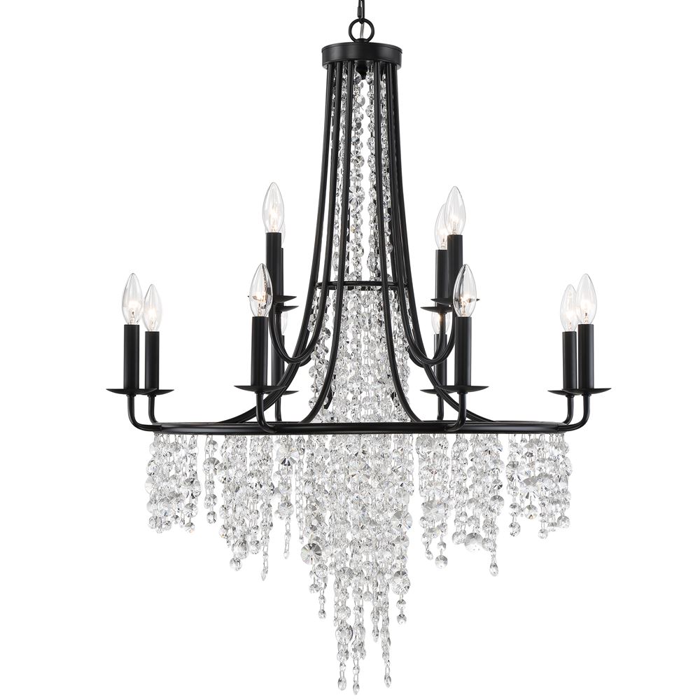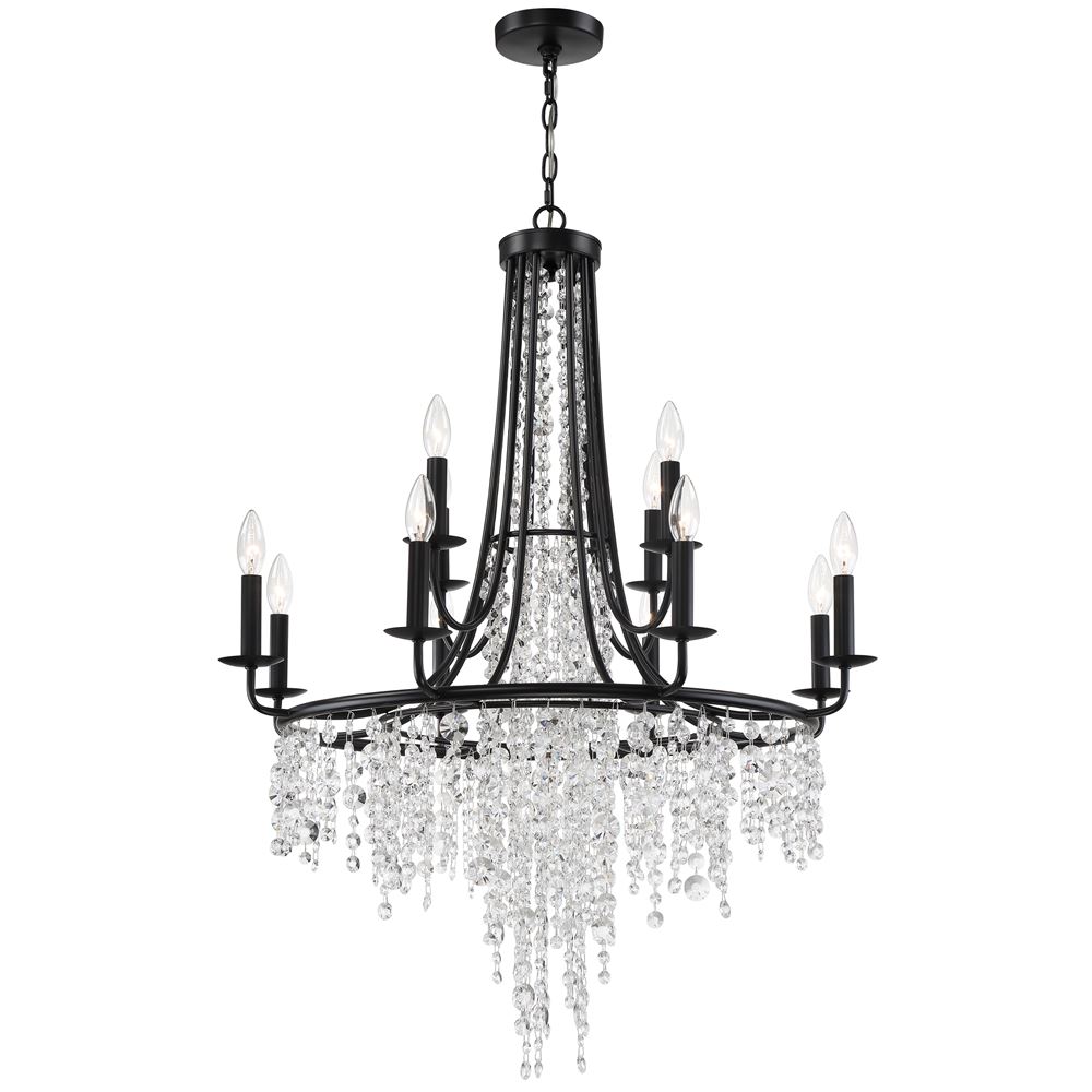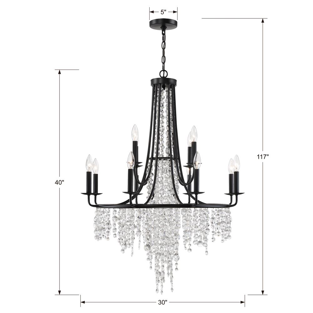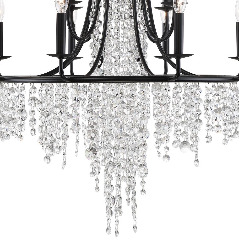 The beautiful Gabrielle silhouette is made of cascading faceted hand-cut crystal strands suspended from its delicate frame. The framework is crafted in wrought iron and available in antique gold, and matte black finishes. Elevate your living space and add character to a room with a shimmering crystal chandelier.