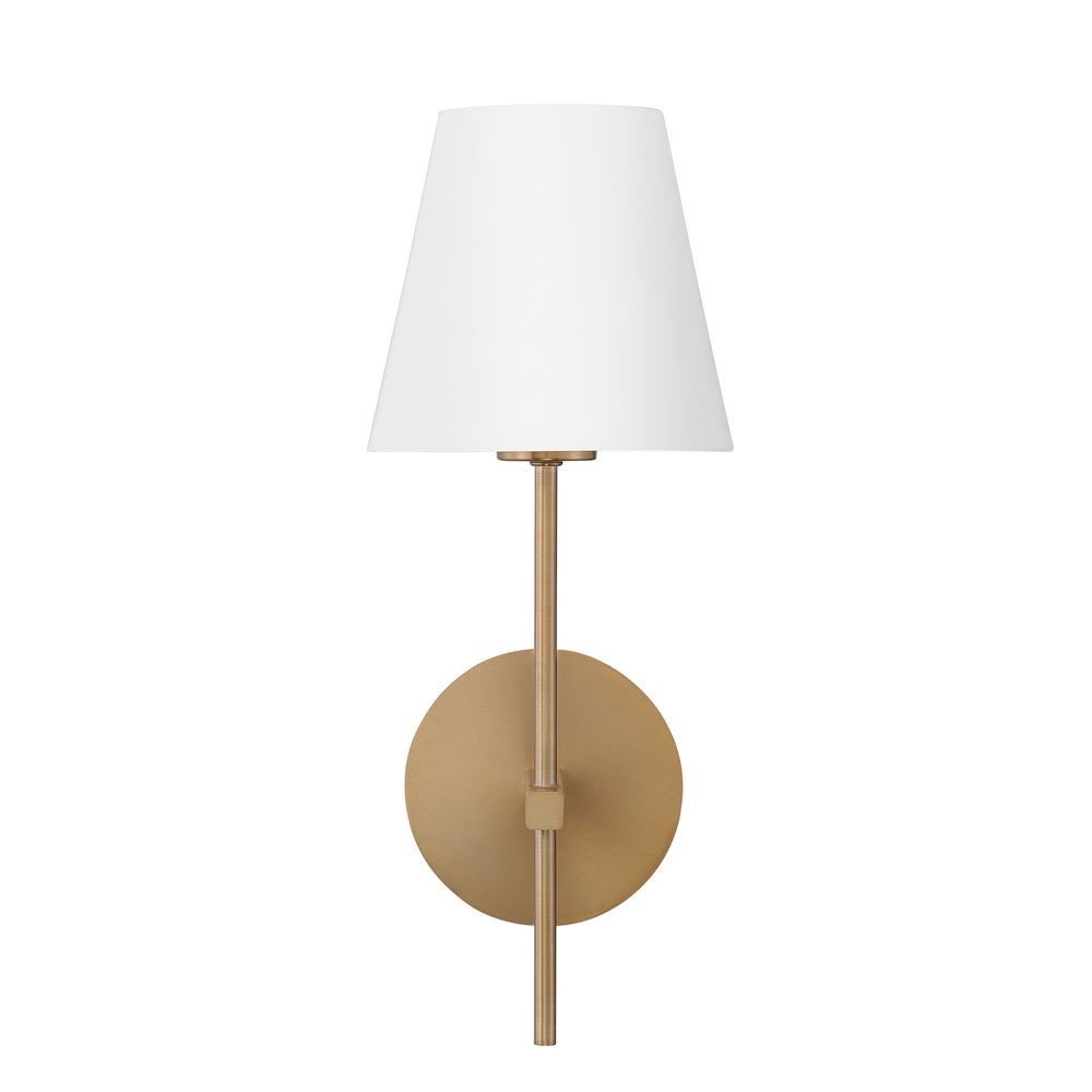 Contrasting Vibrant Gold and Matte Black come together in perfect harmony in this minimalist wall sconce. Extending from a circular backplate, a slender arm is topped with a tapered metal shade. The Xavier wall sconce is a simple and sophisticated addition to any room.
