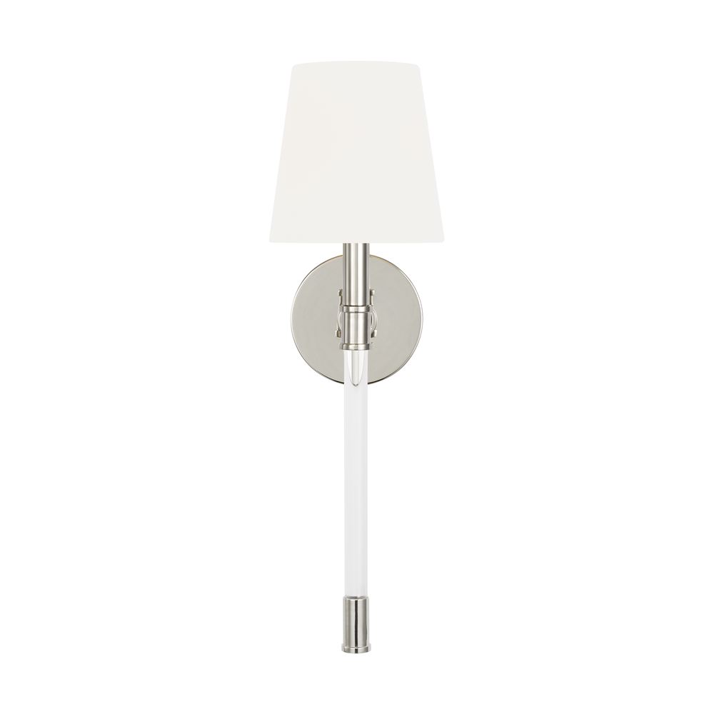 This 1-LT Wall Sconce from Chapman & Myers has a finish of Polished Nickel and fits in well with any Transitional style decor.
