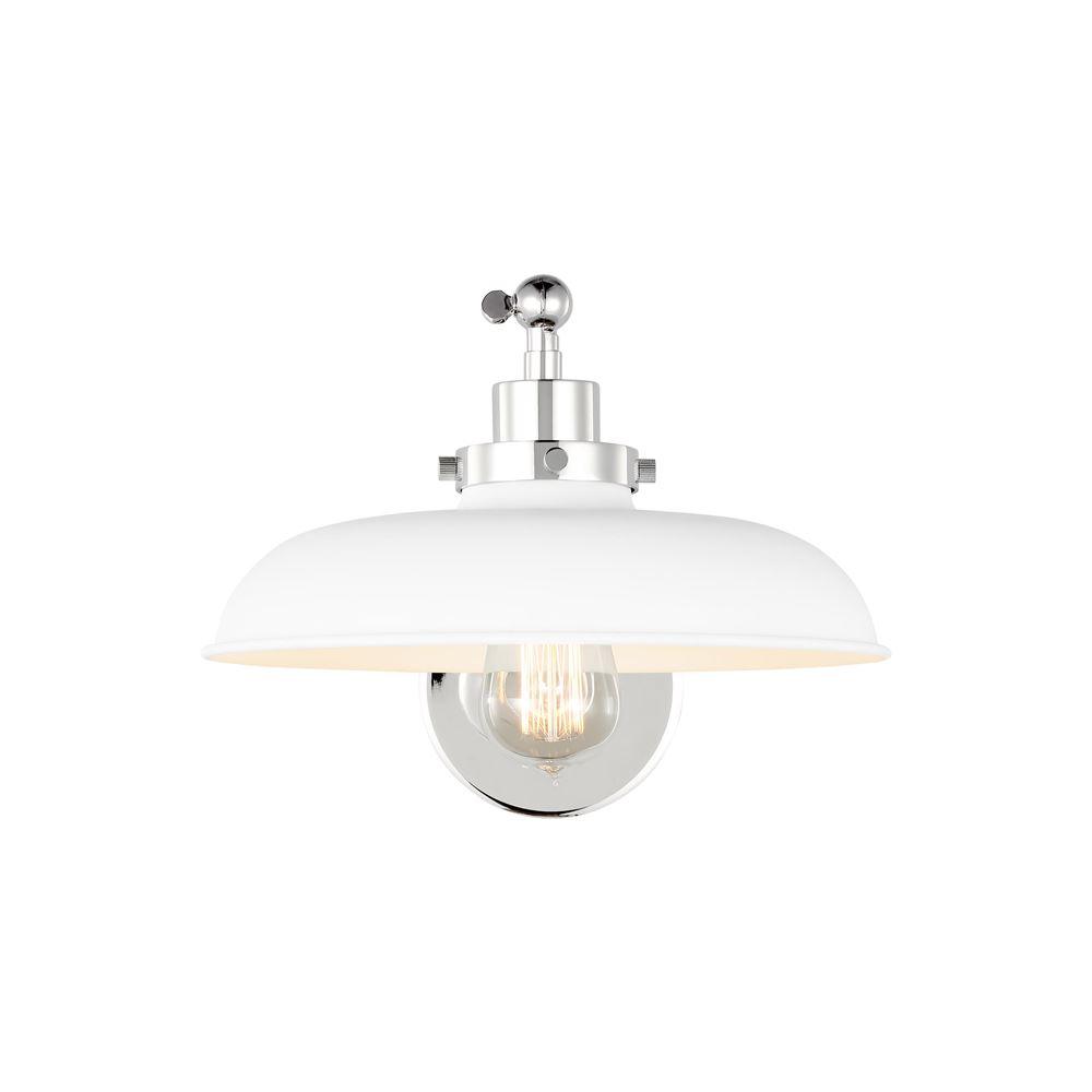This 1-LT Single Arm Wall Sconce from Chapman & Myers has a finish of Matte White and Polished Nickel and fits in well with any Transitional style decor.