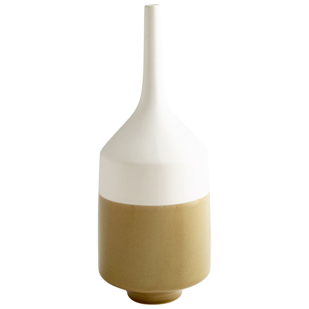 This Large Groove Line Vase from Cyan has a finish of White and Olive Crackle and fits in well with any Transitional style decor.