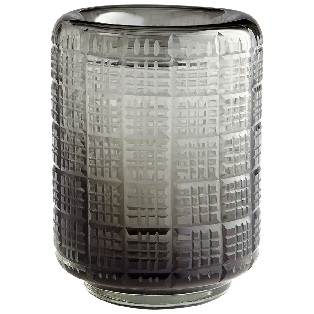 This Medium Off The Grid Vase from Cyan has a finish of SMOKE and fits in well with any Transitional style decor.