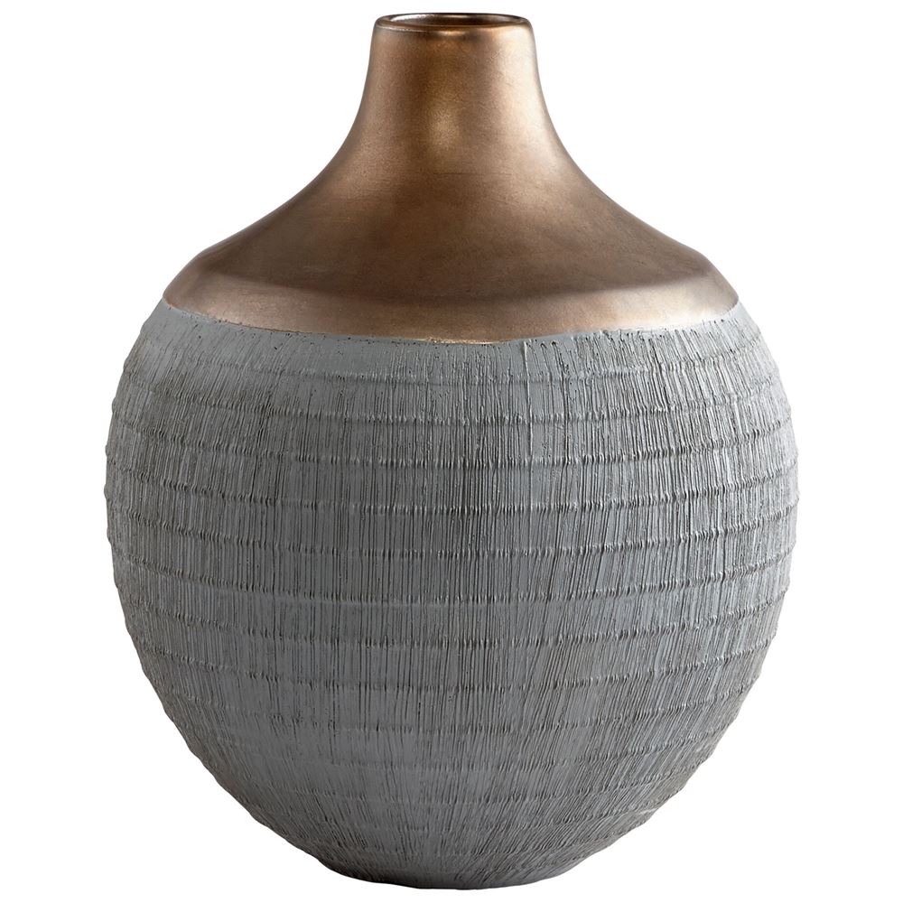 This Small Osiris Vase from Cyan has a finish of Charcoal Grey and Bronze and fits in well with any Transitional style decor.