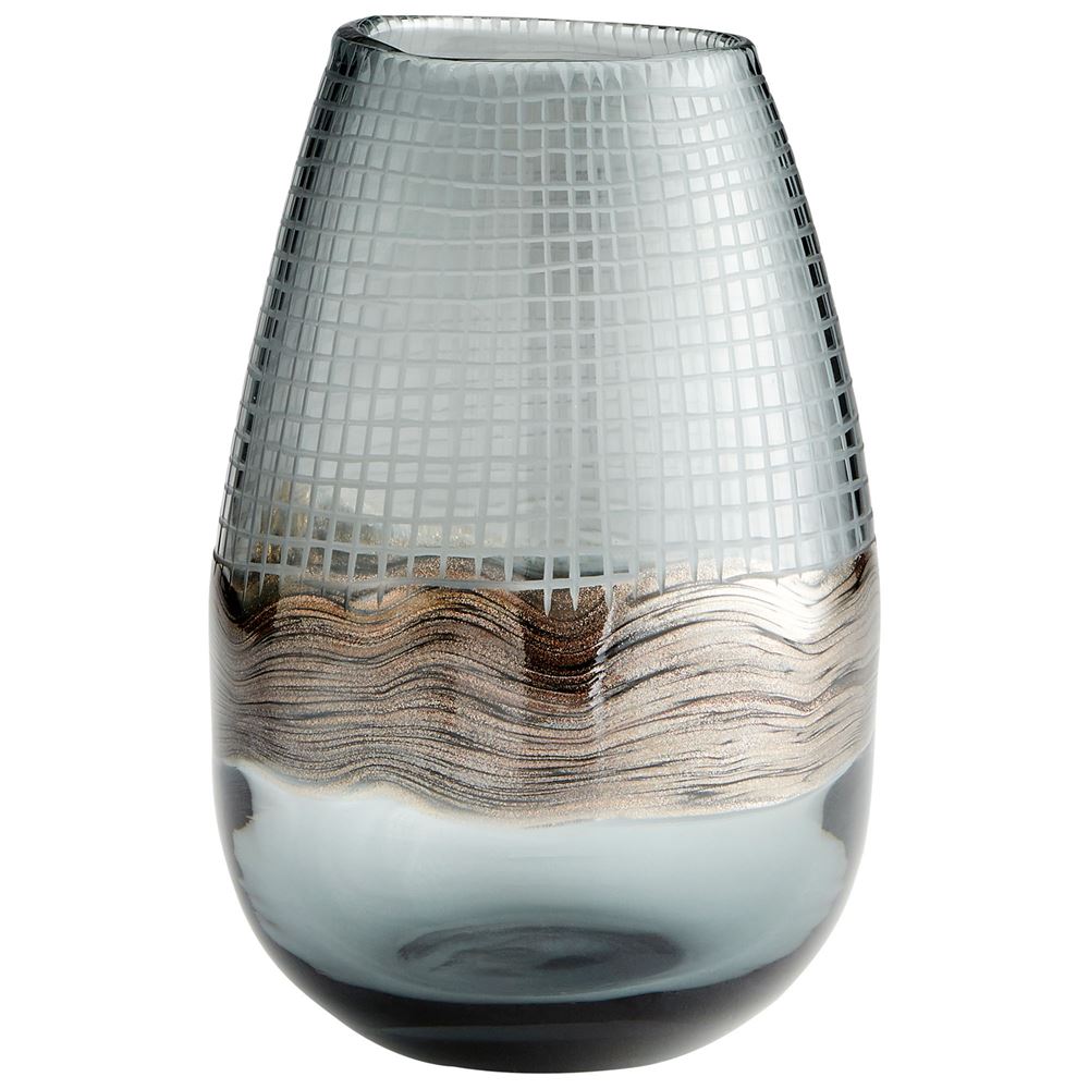 This Small Axiom Vase from Cyan has a finish of Clear and Glitter Gold and fits in well with any Transitional style decor.