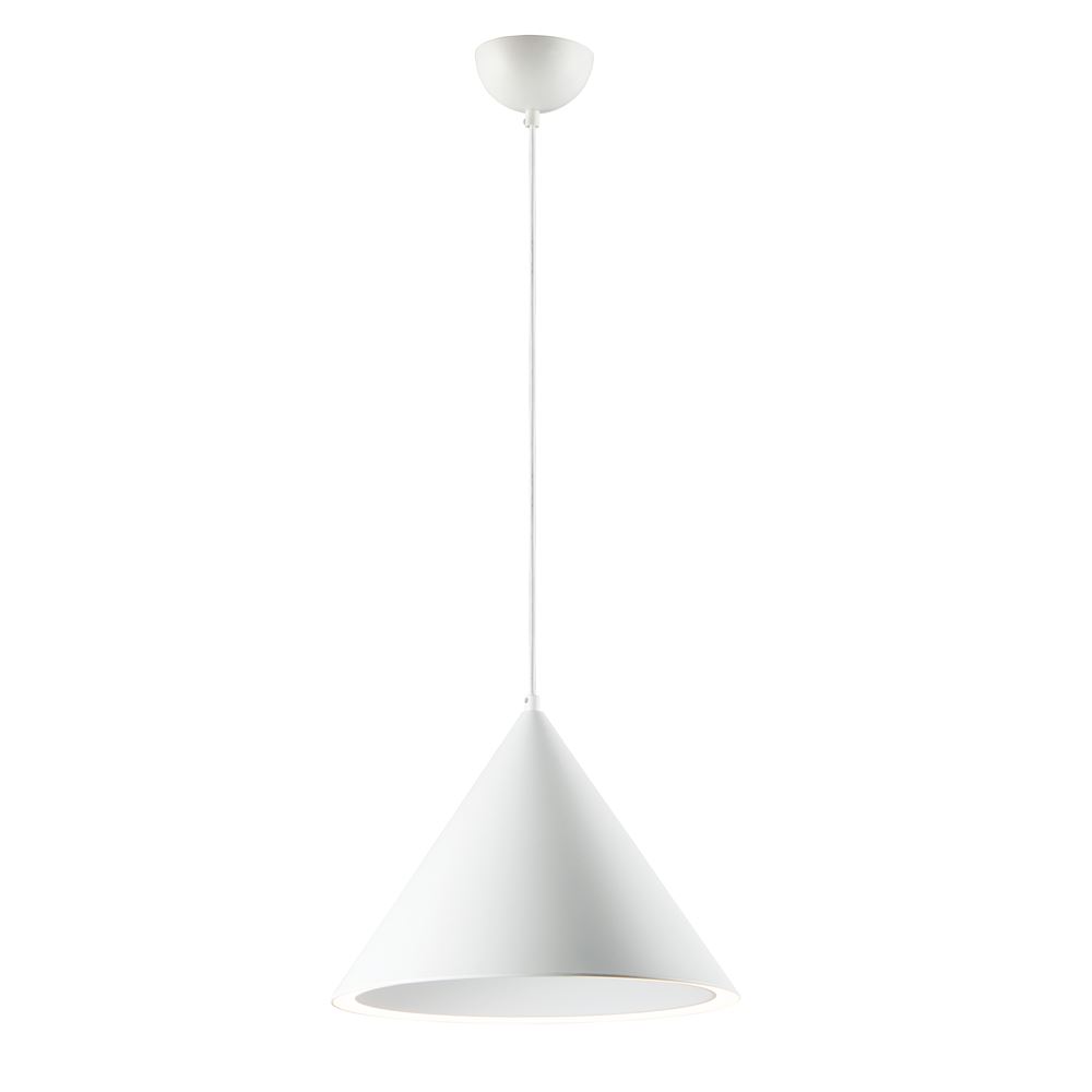 These classic cone pendants available in Matte Black or Matte White appear typical from the outside but take on a different personality from below. These pendants are illuminated on the bottom perimeter creating a black abyss on the inside generating an interesting lighting effect.