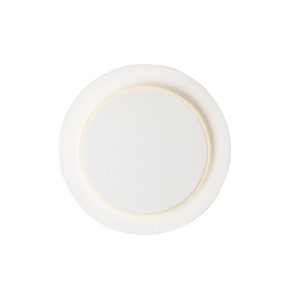 The exterior section of this fixture is lit on the edge and rotates from the top creating a halo effect on the surface behind. Available in either a wall or ceiling fixture is created in two sections finished in Matte White.
