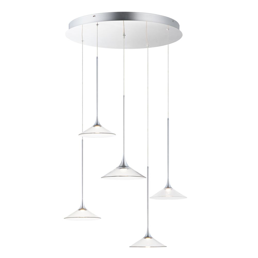 Elongated stems seamlessly transition in to a flared cone, creating a clean contemporary design. The Polished Chrome metal encases LED which illuminates the Clear glass cone for a crisp and clean lighting effect.