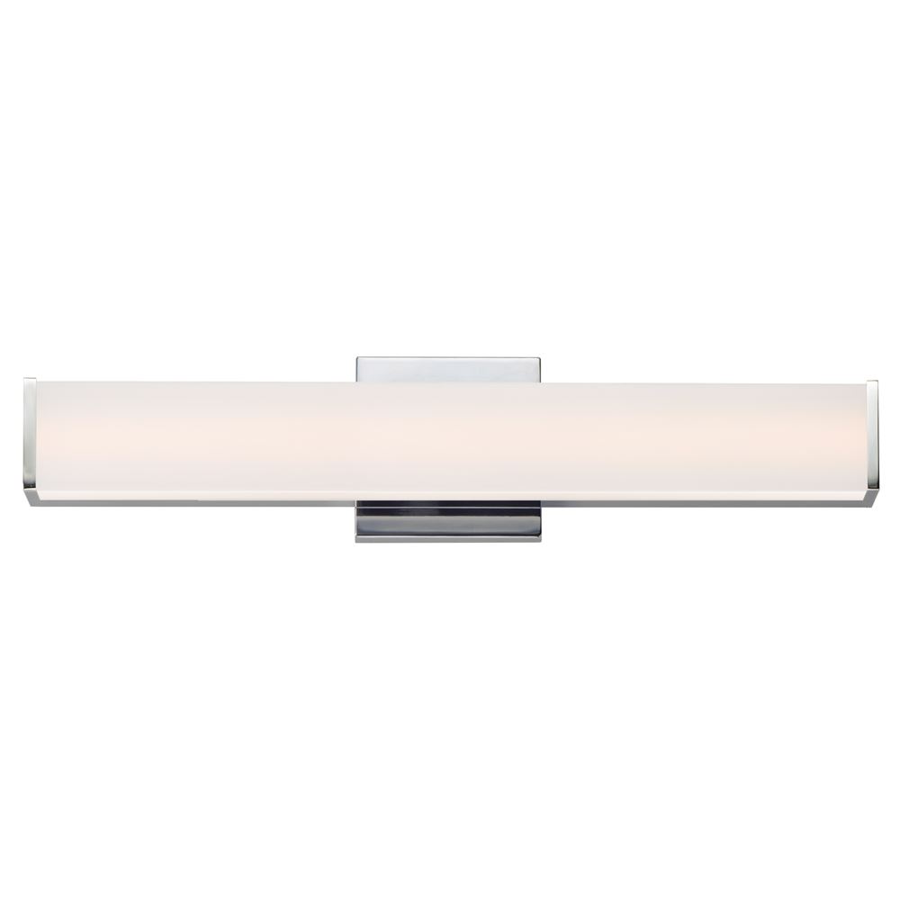 Squares of Satin White glass are supported by flat Polished Chrome end caps with an extruded aluminum frame. Housed on the backside of the LED vanity light is a device to select from 5 color temperatures: 2700k-3000k-3500k-4000k-5000k. A dual mounting backplate allows for the fixture to seamlessly install to a switch box making the glass appear as if floating on the wall. An additional mounting bracket and cover plate is included in the packaging to accommodate larger junction boxes.